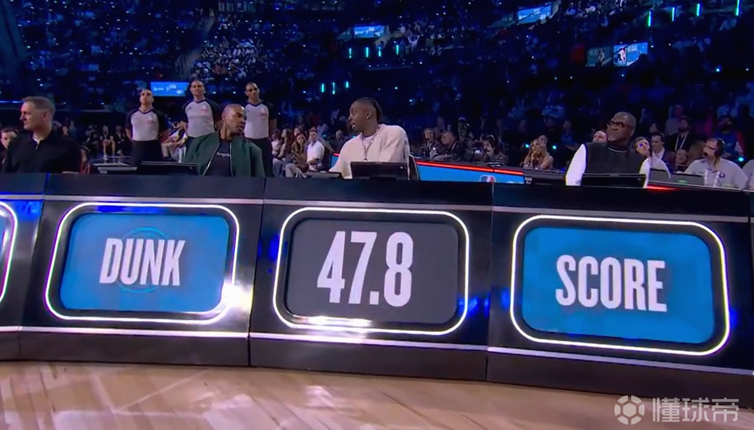 凯沙德-约翰逊底线助跑,完成胯下扣篮,得到49.6分。