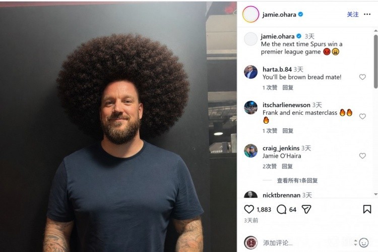 奥哈拉此前玩“蓄发哥”梗调侃热刺不赢球,本轮热刺又输了